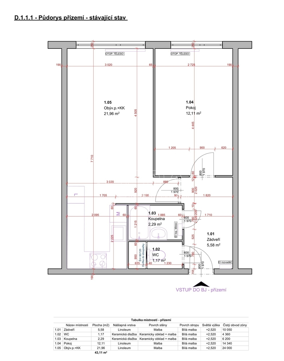 - příprava na kuchyňskou linku (majitelem nebude instalována)