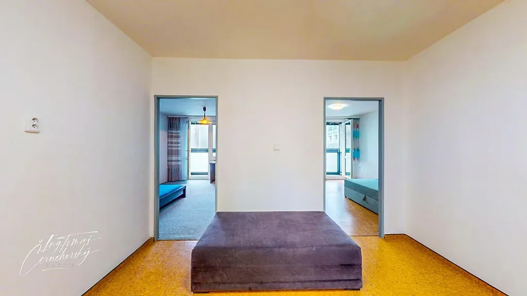 Součástí bytu je koupelna, samostatné WC, sklepní kóje a také další samostatná místnost, kterou lze využít jako šatnu, pracovnu či domácí kancelář.