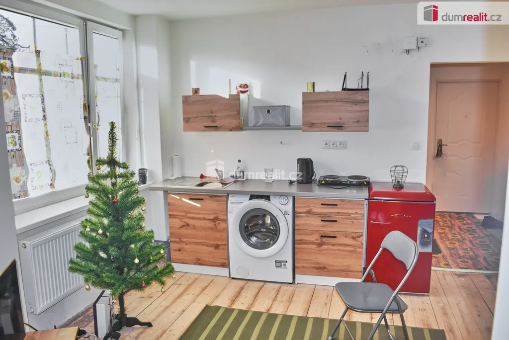 prodej rekonstruovaného bytu o dispozici 2kk, který se nachází v klidné lokalitě s veškerou občanskou vybaveností a zároveň s výbornou dostupností do centra města i do přírody. Byt o celkové ploše 42 m² včetně sklepa se nachází ve zvýšeném přízemí čtyřpatrového cihlového domu, který je součástí souvislého čtyřstranného bloku domů s obestavěným rozsáhlým vnitřním dvorem. Do bytu se vchází kvalitními bezpečnostními dveřmi, poté je z předsíně vstup do koupelny a dalších místností. Koupelna se sprchovým koutem má též umyvadlo a v samostatném výklenku wc, jsou zde 2 sklopná plastová okna. Dále vcházíme do prvního pokoje s kuchyňským koutem. Zde je decentní kuchyňská linka s dřezem, lednička i pračka (spotřebiče jsou v ceně). Byt, orientovaný na jihozápad, je ve výborném stavu po rekonstrukci. Nová elektřina v mědi, v pokojích jsou kvalitní rustikální prkenné podlahy, okna jsou plastová s trojskly. Vytápění a ohřev vody je řešeno vlastním kotlem ústředního topení, umístěným v koupelně. K bytu náleží sklepní kóje i možnost využívání společné půdy. Prostor vnitrobloku má dva vjezdy pro auta, která zde mají možnost parkování. Je zde velká travnatá plocha s odpočívkami, dětským hřištěm i možností sušení prádla. Tento byt představuje výbornou investiční příležitost, anebo možnost zřídit si zde příjemný vlastní domov.