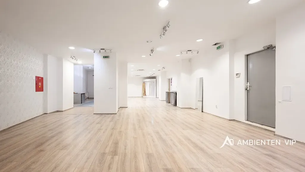 2. Nebytový prostor. Druhá část nebytové jednotky, dříve využívaná jako svatební salón, je přístupná ze společných prostor domu a nachází se ve 2. NP s výtahem. Celková výměra činí 214,3 m² + balkon 1,8 m². Dispozice zahrnuje: dva velké otevřené prostory, kancelář s vlastním sociálním zázemím a balkonem, druhou samostatnou kancelář, několik oddělených toalet a komoru. Prostory se vyznačují vysokými stropy, reprezentativním charakterem a variabilním využitím, vhodným pro kanceláře, showroom, služby či sídlo společnosti.