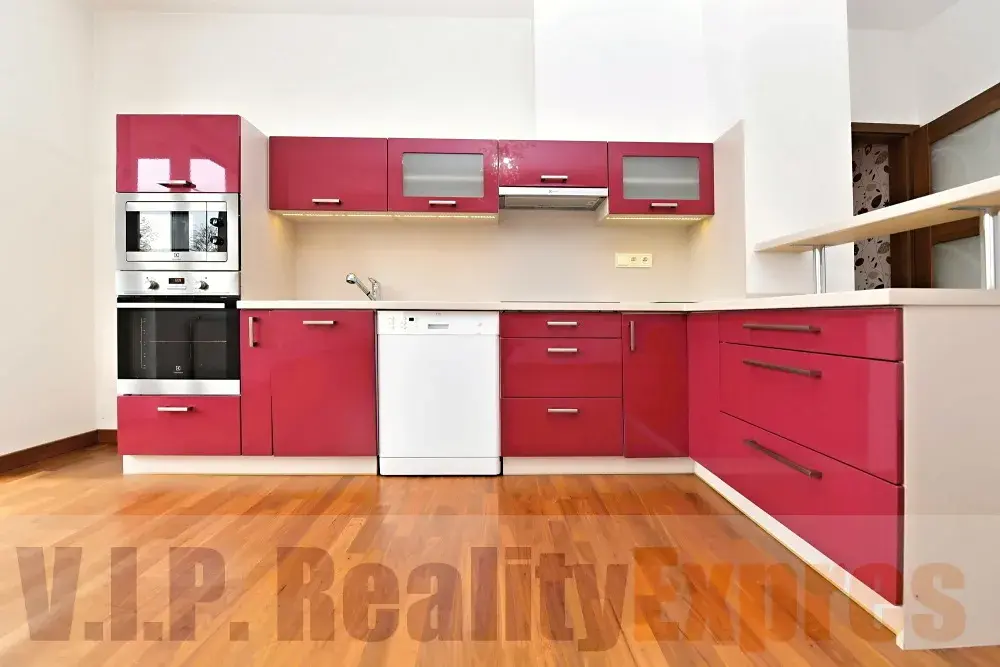 Naprosto výjimečný slunný byt 3+kk o ploše 70 m² v 2.NP s prostorným balkonem o velikosti 9 m² situovaný do velmi tiché, klidné vilové části. Byt se skládá ze vstupní chodby s vestavěnou skříní na obuv, kabáty a úklidové prostředky. Na stěnách v chodbách se nachází vkusné tapety. Prostorný obývací pokoj spojený s kuchyňským koutem disponuje velkým francouzským oknem přes, které je vstup na balkon s orientací na západní stranu. V kuchyňském koutě je krásná kuchyňská linka na míru s barem. Linka obsahuje vestavěné spotřebiče značky Electrolux a AEG. Jedná se o indukční varnou desku, elektrickou troubu a myčku na nádobí. V obývacím pokoji je místo pro jídelní stůl i rohovou sedací soupravu a TV. Ložnice 1 je rovněž s přístupem na balkon a v každém pokoji se nachází vestavěný skříň. Ložnice 2 má dostatek místa pro pracovní stůl, postele a skříňky a mimo jiné i velké okno do zahrady. Prostorná moderní koupelna je s rohovým sprchovým koutem, umyvadlem, a místem pro pračku. WC je v samostatné místnosti. V celém bytě jsou použity kvalitní podlahy a dlažba. Na všech oknech jsou žaluzie. Balkon má elektronickou markýzu. Vytápění a ohřev vody je zajištěno vlastním plynovým kotlem umístěným v bytě.