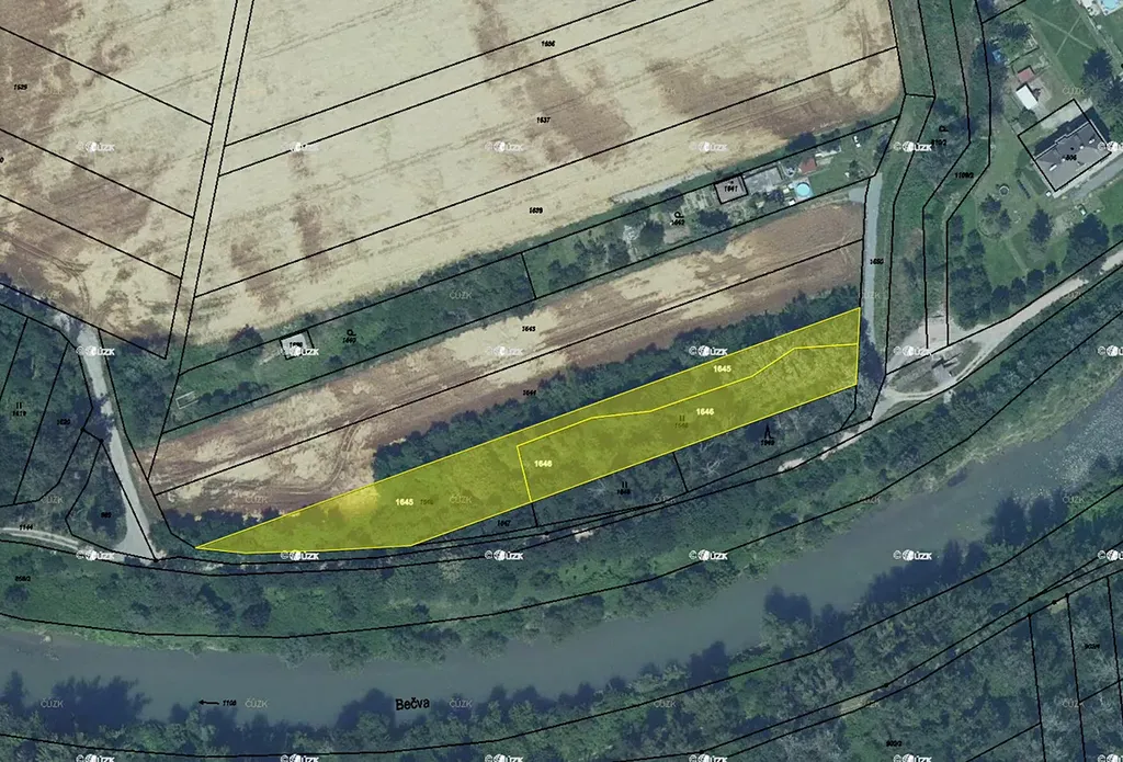 Pozemky patří pod LV: 65, parcelní číslo: 1645, 1646 o podílu 1/1.