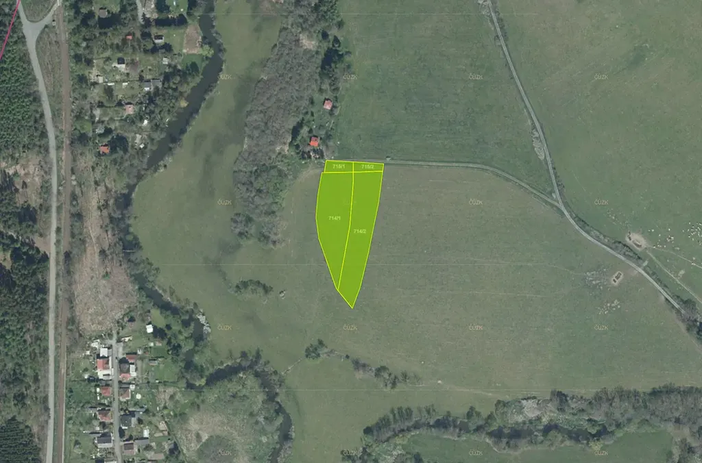 Pozemky patří pod LV: 919, parcelní číslo: 714/1, 714/2, 715/1, 715/2 o podílu 1/1.
