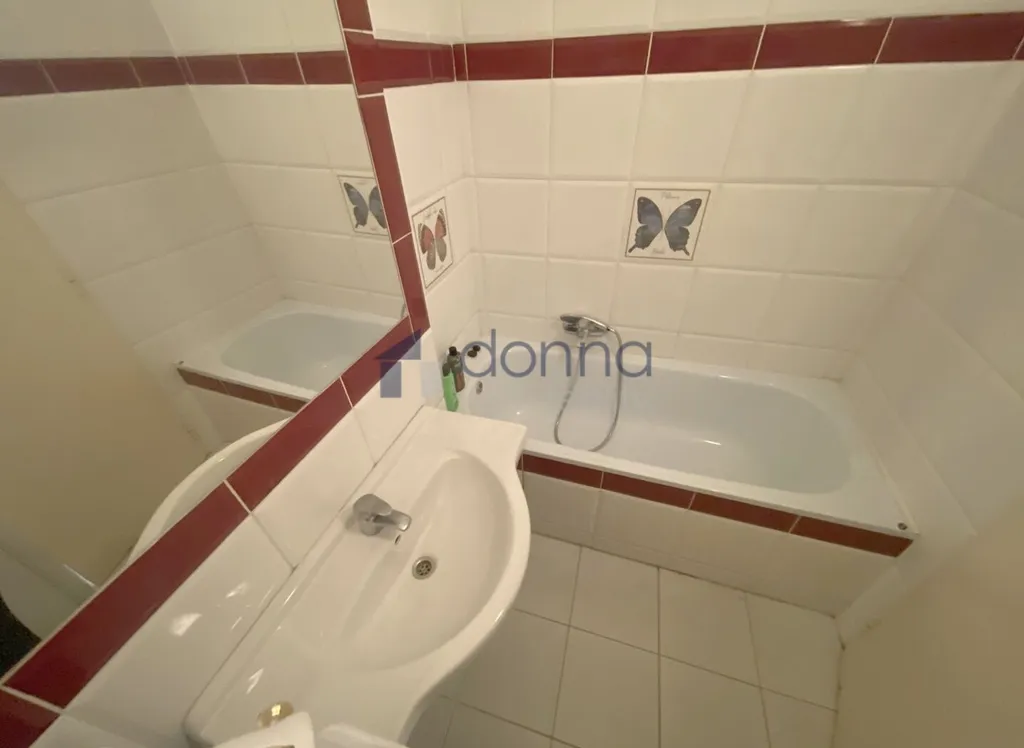 Vstupní chodba s malou kuchyňskou linkou (varná dvouplotýnka, menší lednice), koupelna s vanou, samostatná toaleta, komora. Obývací pokoj s nábytkem IKEA: rozkládací pohovka, velká šatní skříň, policové čtverce.