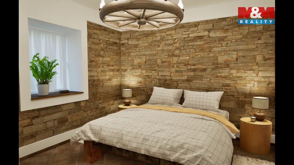 Tento byt se nachází v 1.NP rekonstruovaného domu, ve kterém je více bytů venkovského stylu. Byt má 65 m2 a je tu vstupní chodba, obývací pokoj s kuchyňským koutem, dvě ložnice, koupelna s vanou, umyvadlem a WC, dále pak komora. Orientace bytu je východ a západ. V bytě byly opraveny a ponechány původní opukové zdi, v obývacím pokoji jsou i dřevěné trámy, které umocňují venkovskou atmosféru bydlení.