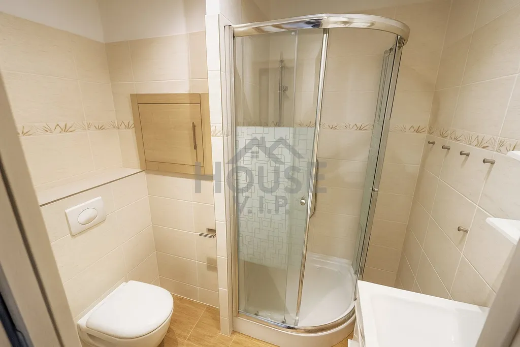 Velký důraz byl kladen na úložné prostory – v chodbě se nachází vestavěné skříně, k dispozici je také samostatná komora s regálovým systémem a přípojkou na pračku, která je součástí prodeje. Koupelna je vybavena sprchovým koutem a toaletou. Dispozice bytu je velmi funkční a umožňuje pohodlné bydlení bez kompromisů.