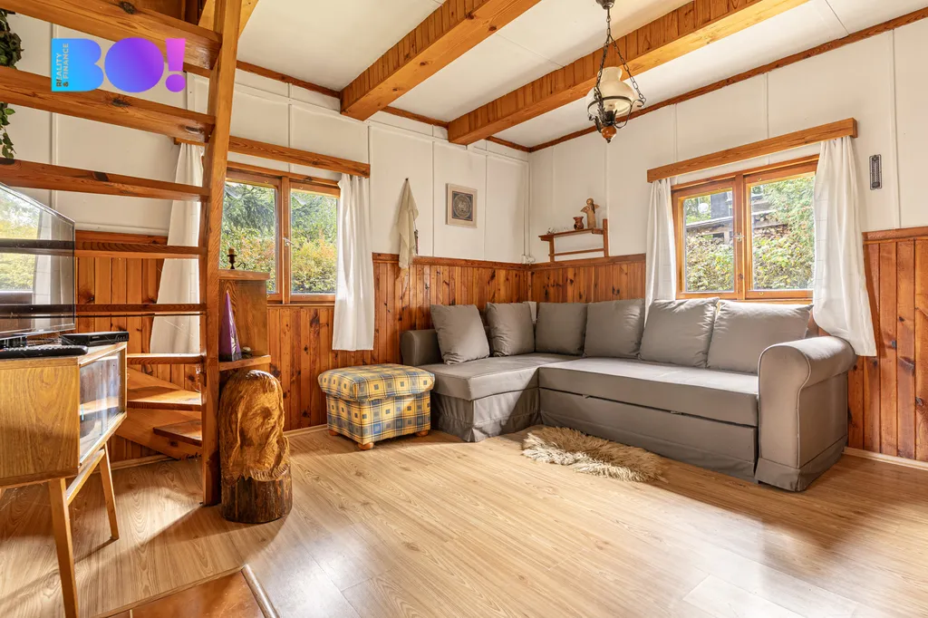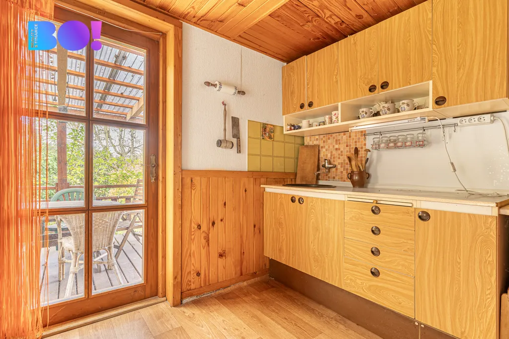 Prodej zděné chaty ve velmi klidné části Stříbrné Skalice, osada na Hradcích, okres Praha východ. Chata má dvě nadzemní podlaží a je ve velmi udržovaném stavu. Starší, ale zachovalá kuchyňská linka, koupelna prošla rekonstrukcí, sprchový kout, WC a umyvadlo.