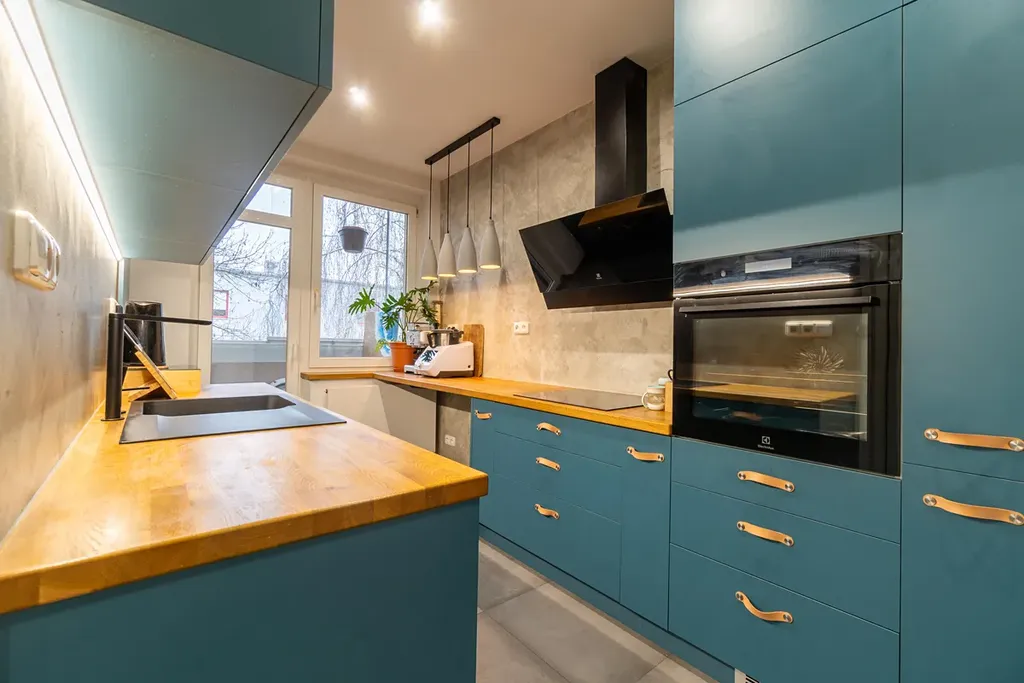 Byt prošel nedávno velmi náročnou a kvalitní rekonstrukcí. Vše bylo rekonstruováno včetně rozvodů, podlah, omítek, dveří, obkladů, sanity a podobně v exkluzivní kvalitě. Podlahy jsou dřevěné, veškeré omítky jsou nové, koupelna a WC jsou obloženy velkoformátovými obklady a vybaveny kvalitní sanitou. Veškerý vestavný nábytek je na míru s použitím vysoce kvalitních materiálů. Všechny dveře jsou posuvné opět na míru. Nová kuchyň s masivní dřevěnou deskou a kvalitními spotřebiči je součástí prodeje. Stejně tak i šatna s vestavným nábytkem, která je přímo u ložnice. Parapety u oken jsou z masivního dřeva. Vedle kuchyně je technická místnost pro pračku a sušičku