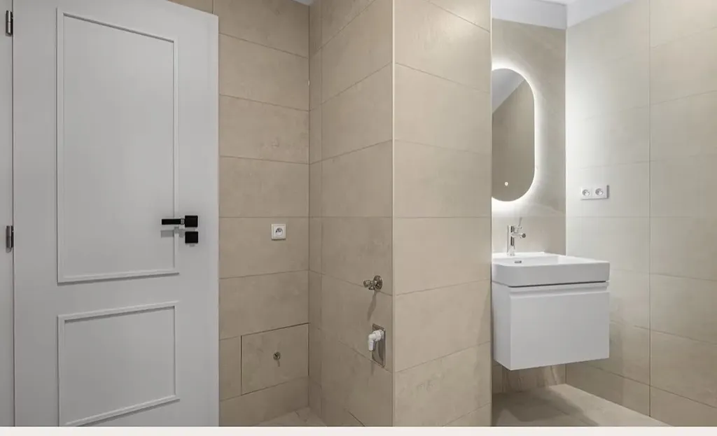 Dispozici tvoří vstupní hala, prostorná koupelna, ložnice a obývací pokoj s kuchyňskou linkou. Topení i ohřev vody zajišťuje elektrický kotel. V bytě jsou použity kvalitní materiály a součástí je také plně vybavená kuchyňská linka.