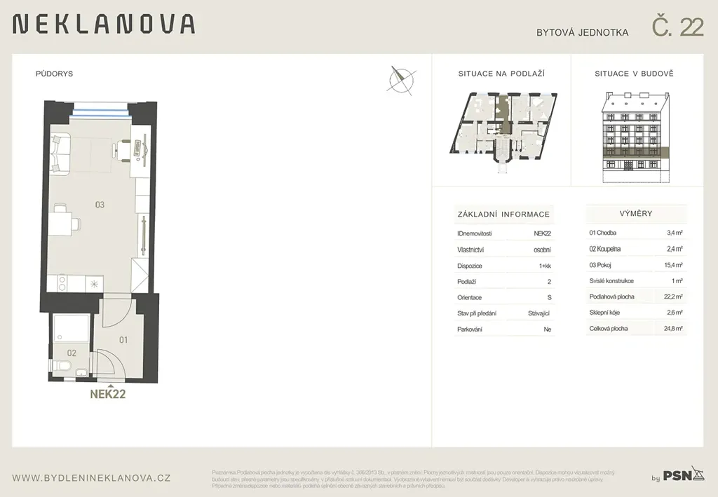 Nabízíme Vám moderně zrekonstruovaný byt 1+kk o výměře 22,2 m² + 2,6m² sklepní koje, který se nachází v udržované cihlové budově v jedné z nejžádanějších částí Prahy – v bezprostřední blízkosti pražské Náplavky. Ideální volba jak pro investory, tak pro ty, kteří potřebují komfortní zázemí v centru města.