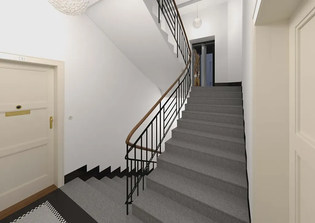 Byt je situován ve 2. nadzemním podlaží šestipatrového domu s výtahem, což zajišťuje pohodlný a bezproblémový přístup. Po kompletní rekonstrukci je jednotka ve velmi dobrém stavu a vybavena tak, aby bylo možné okamžitě bydlet bez dalších investic. Součástí je sklep o velikosti 2,6 m², vhodný pro uložení osobních či sezónních věcí.