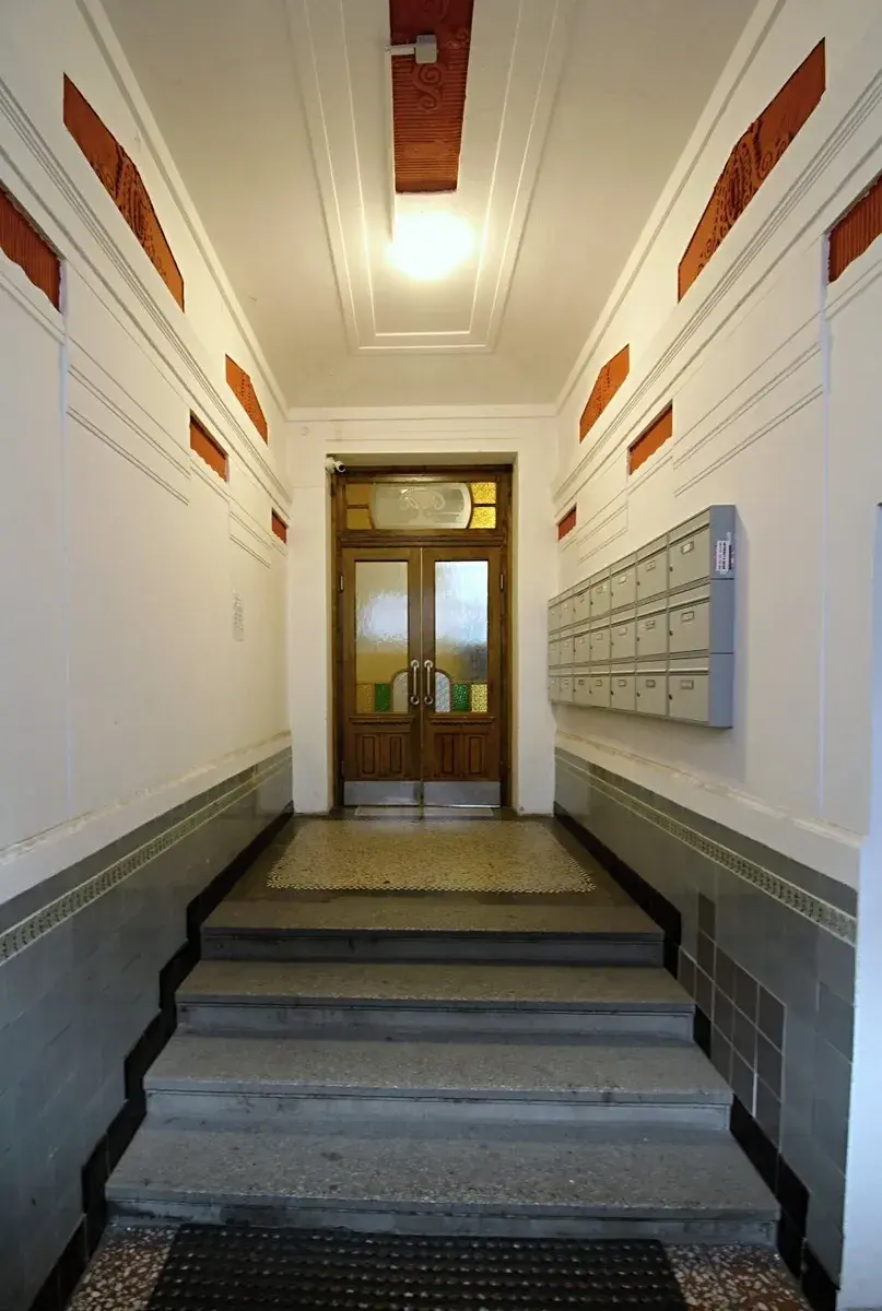 Bytový dům je ve velmi dobrém stavu – zateplení fasády do dvora s plastovými okny, opravená historická fasáda do ulice se zdvojenými dřevěná okna do ulice Nuselská, plastová okna do vnitrobloku. Nespornou výhodou bytu je pronajaté parkovací místo přímo u výtahu ve vnitrobloku domu za 2.800Kč/měsíc. Tento pronájem od SVJ je možné po měsíci zrušit nebo prodloužit dle přání nových majitelů. Další parkování je možné v okolních ulicích na parkovacích zónách.