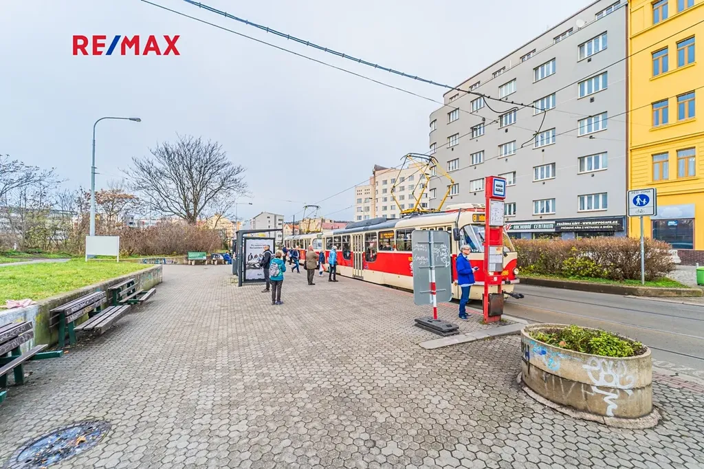 - stanice metra B Palmovka a zastávka tramvaje Palmovka u domu