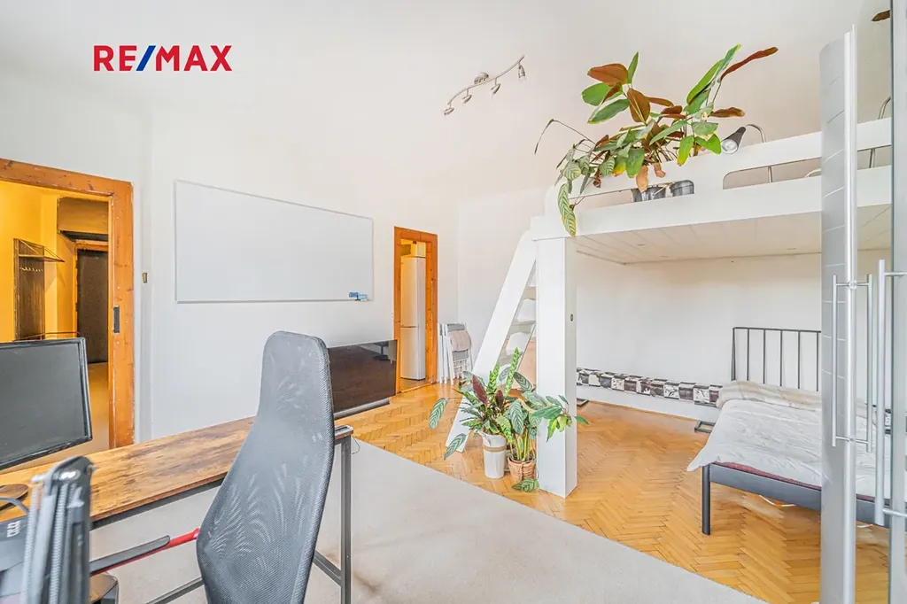 Byt prošel v průběhu let částečnou rekonstrukcí a je ve funkčním, udržovaném stavu. Ačkoli se dům nachází přímo u stanice metra Palmovka, okna bytu (plastová) jsou orientována na jihovýchod do tichého vnitrobloku. Další výhodou je vestavěné spací patro v obývacím pokoji a vlastní ohřev vody (plynová karma) a zdroj vytápění (WAW).