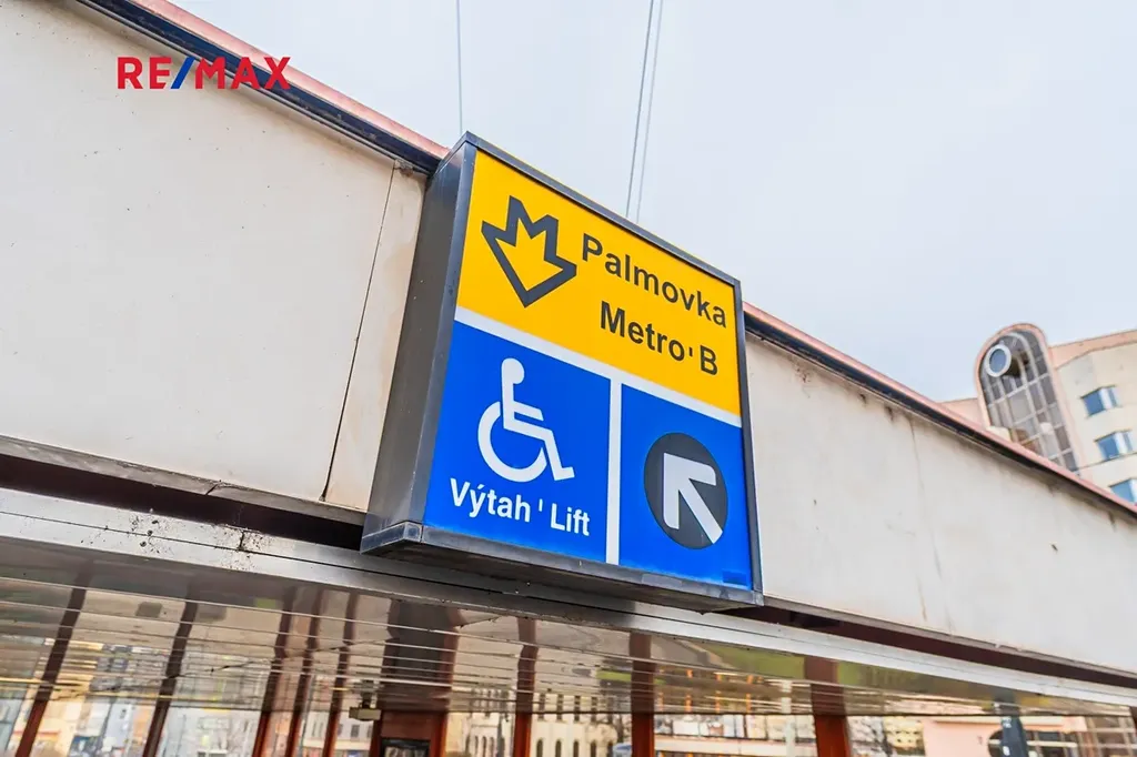 Nabízíme Vám ke koupi bytovou jednotku 1+1 (38,5 m2) v osobním vlastnictví v 6. patře (ze šesti) cihlového domu s výtahem přímo u stanice metra Palmovka, v Praze Libni, ul. Novákových.