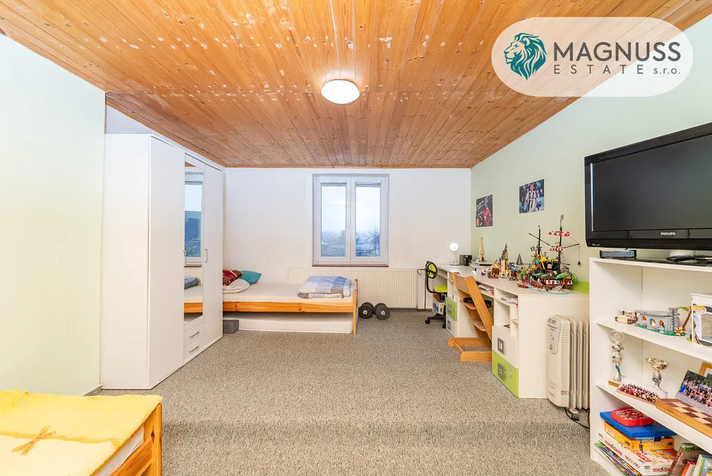 • 2. NP: prostorný obývací pokoj a dva dětské pokoje