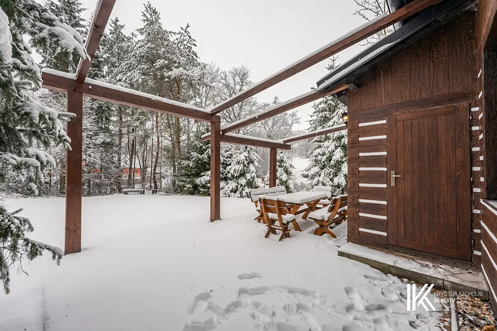 Na pozemku o celkové rozloze 739 m² stojí tato neobyčejná chalupa, která prošla v roce 2023 rozsáhlou rekonstrukcí. Zvenku působí jako klasická roubenka, ale za krásnou fasádou z techniky zkamenělého dřeva se skrývá moderní interiér. Trámy byly zachovány a ponechány přiznané, aby dům neztratil svůj charakter, původní okna dávají stavbě přirozenou atmosféru a nová plechová střecha zajišťuje dlouhou životnost. Dům je cihlový, pevný a připravený na dlouhá léta používání.