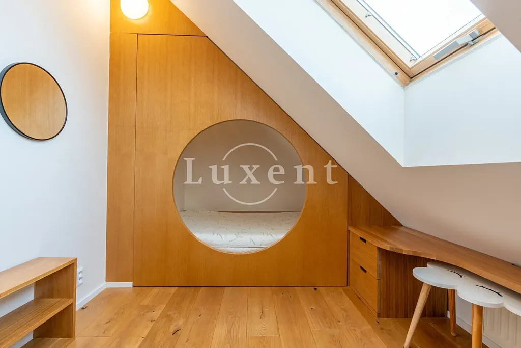 Nabízíme k dlouhodobému pronájmu výjimečný byt 4+kk o podlahové ploše 120 m², situovaný v nejvyšším patře moderní nástavby činžovního cihlového domu s výtahem v oblíbené pražské čtvrti Dejvice. K bytu náleží také prostorná terasa 18 m² orientovaná do klidného vnitrobloku, která zajišťuje naprosté soukromí a příjemné venkovní zázemí.