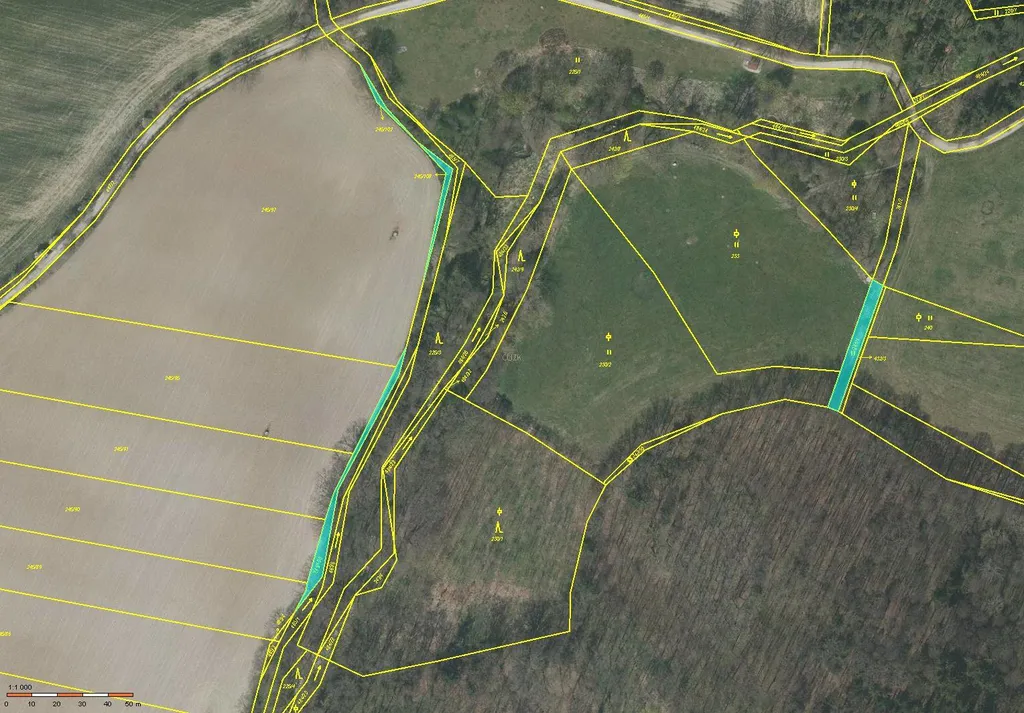 Pozemky jsou tvořeny trvalým travním porostem (945 m2) a dále ornou půdou (815 m2). Část parcel je obhospodařována na základě pachtovní smlouvy s roční výpovědní lhůtou a jsou zapsány v evidenci LPIS (možnost čerpat dotace). Po dohodě s vlastníkem je možný i samostatný odkup pouze jednotlivých parcel.