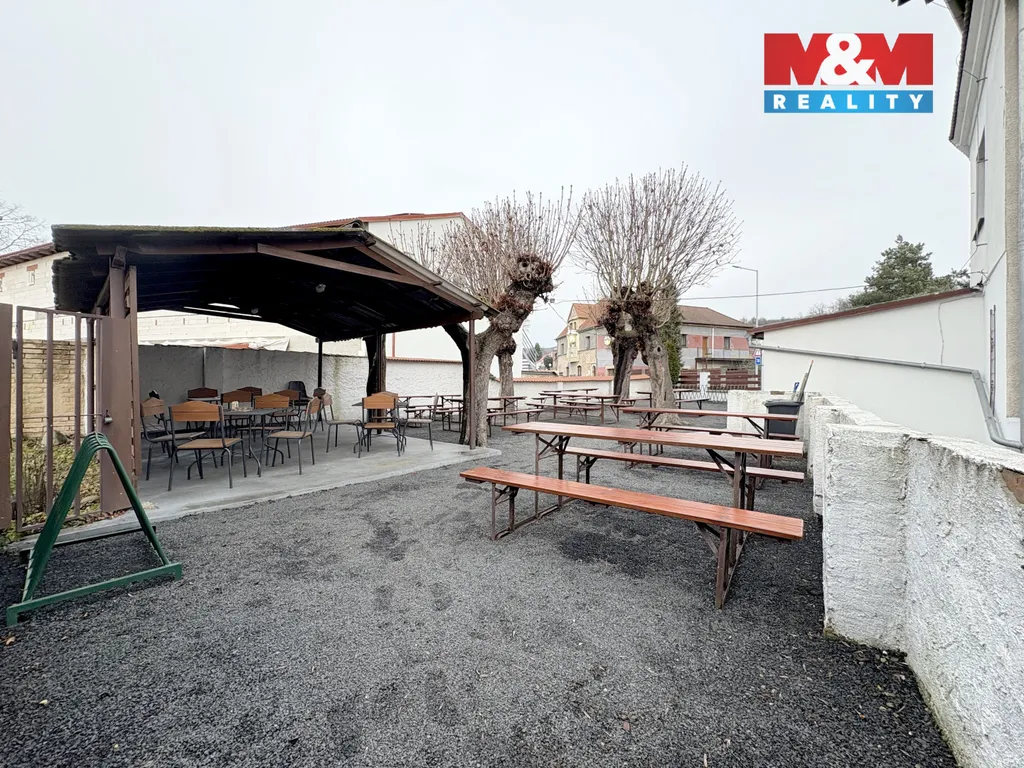 Třípodlažní cihlová budova s podzemním podlažím se nachází v rušné části obce, což zajišťuje stálý přísun stálých i nových zákazníků.