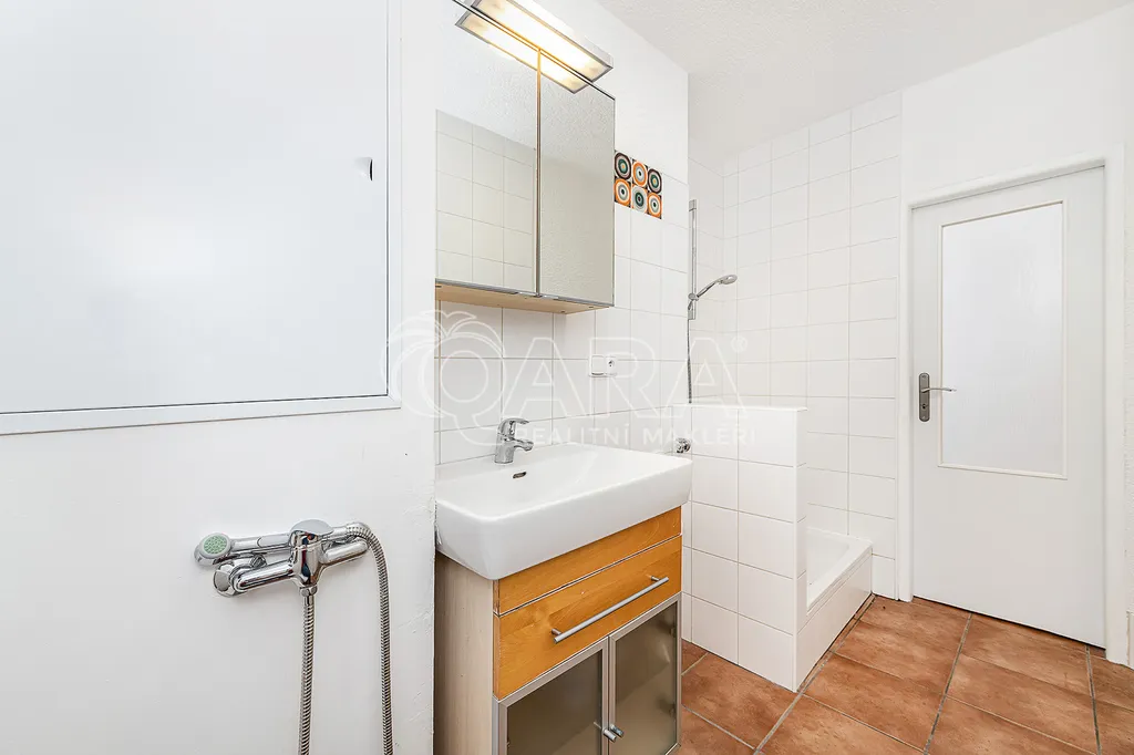 Byt je po rekonstrukci. Je vybaven novou kuchyňskou linkou se sklokeramickou varnou deskou, troubou a vestavnou mikrovlnkou. V lince je ponechán prostor pro nízkou ledničku. Jádro je zděné, toaleta spojená s koupelnou se sprchovým koutem disponuje oknem, zajišťující dostatek denního světla. Vytápění a ohřev vody centrální z vlastní plynové kotelny. Plastová okna. Na podlahách je dlažba a v obytných místnostech koberec v dobrém stavu. Byt je vymalován a pečlivě uklizen.
