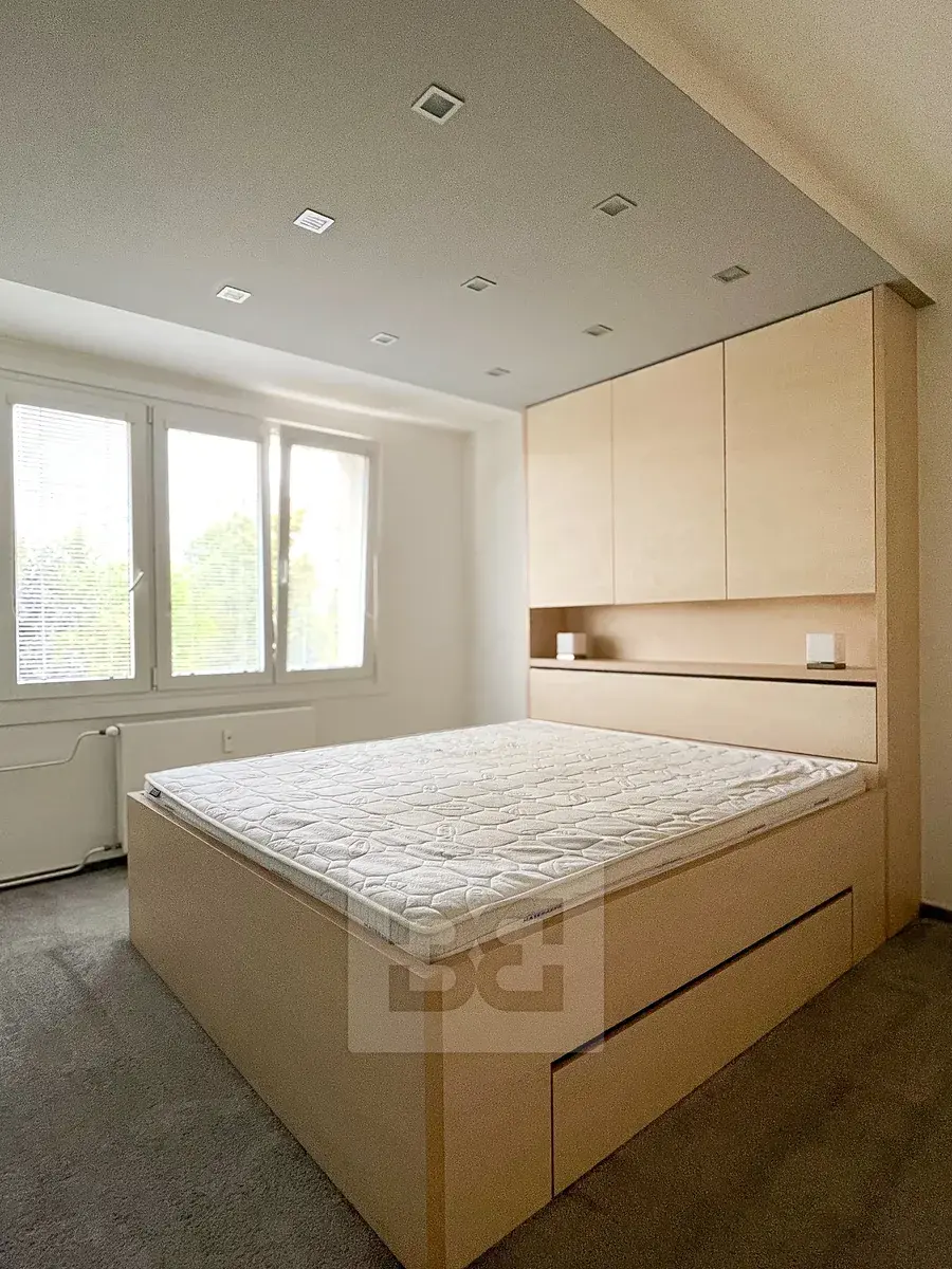 Byt je plně vybaven - od botníku, přes postel s matracemi, prozkládací pohovku, pračku, myčku, skříně zaručujíci dostatek úložného prostoru až po promítačku namísto televize. Na chodbě je komora pro uskladnění a v okolí dostatek parkovacích míst.