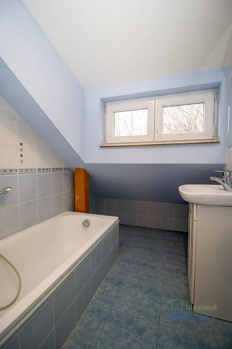 V kompletně zatepleném patře naleznete další dva pokoje, samostatné WC, koupelnu a také dvě obytné místnosti v podkroví, které lze dokončit a uzpůsobit dle vlastních představ – ať už jako pracovnu, ateliér nebo hernu. Pod šikmou střechou je navíc praktický úložný prostor.