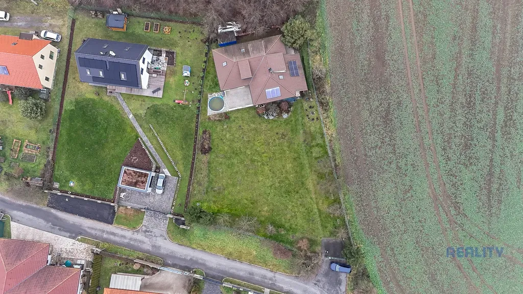 Dům stojí na krásném, pečlivě udržovaném pozemku o rozloze 1200 m², odkud se otevírá nerušený výhled do okolní přírody. Nachází se na konci příjezdové cesty, což zaručuje naprosté soukromí a klid – ideální místo pro ty, kteří hledají harmonické bydlení v blízkosti přírody, ale zároveň potřebují rychlé spojení s městem.
