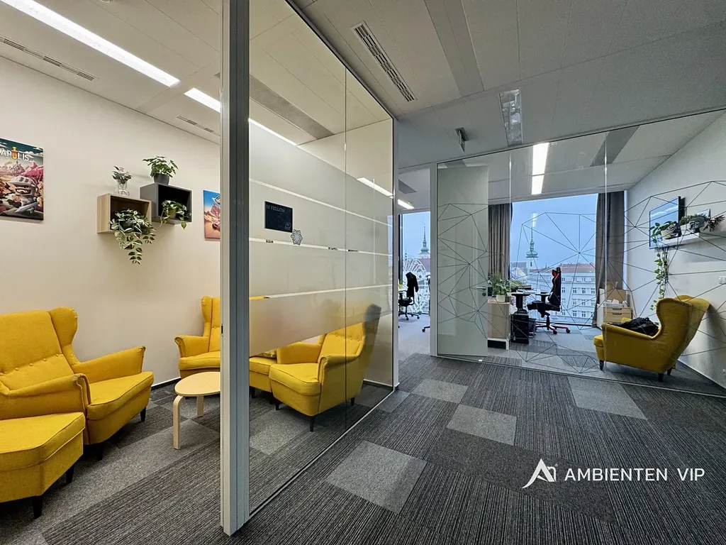 Kanceláře se nachází v reprezentativním administrativním objektu se vstupem přímo z ulice, výtahem a bezbariérovým přístupem. Budova nabízí recepci s provozem 24/7, ostrahu a kamerový systém, a to v rozsahu dle zvolené nabídky. Samotný prostor je navržen s důrazem na efektivní provoz a komfort pracovního prostředí. K dispozici je plně vybavená kuchyň s jídelním stolem a posezením, sociální zázemí, 3 uzavřené kanceláře pro přibližně 8–10 osob, 1 menší kancelář vhodná pro 1–3 osoby nebo jako klidová zóna, sdílené pracovní a relaxační posezení s výhledem na Moravské náměstí a celé Brno. K dispozici jsou dále dva call boxy, hlavní zasedací místnost pro cca 10 osob, menší zasedací místnost pro 3 osoby a samostatná šatna.