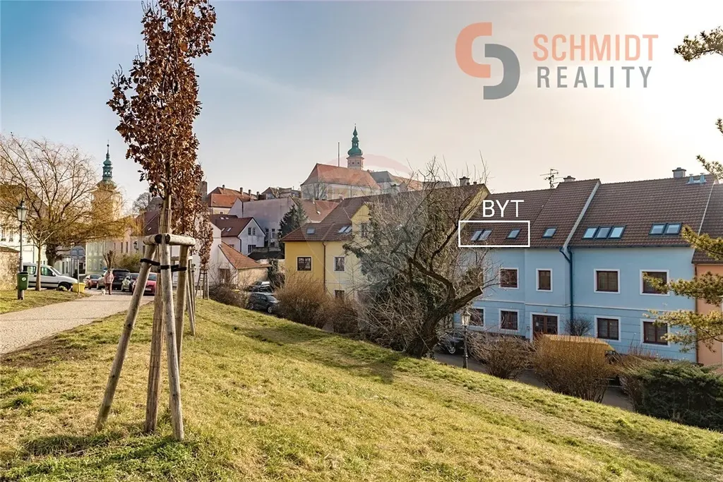 Nabízíme k pronájmu podkrovní byt 3+1 nedaleko centra města Mikulova na ulici Brněnská. Nachází se ve 3. nadzemním podlaží a je součástí bytového domu, kolaudovaného v roce 2007. Skládá se z chodby, ze které jsou samostatné vstupy do pokojů ( ložnice, dětský pokoj, obývací pokoj ) a kuchyně. Koupelna a WC jsou odděleny. Kuchyně a obývací pokoj jsou orientovány na severovýchod, ložnice a druhý pokoj na jihozápad s hezkým výhledem na zámek. Byt je částečně vybaven.