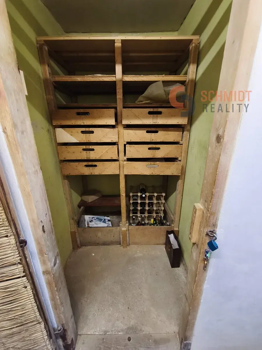 K bytu náleží 2 sklepy. Hlavní má velkorysou plochu 13,3 m2, doplňkový pak 2,2 m2.
