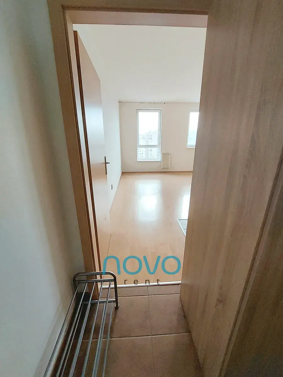 Po vstupu do bytu naleznete v chodbě prostornou šatní skříň. Na konci chodby se nachází koupelna s vanou, umyvadlem a částečně oddělenou toaletou. Po pravé straně je pak samostatný pokoj s rohovou šatní skříní. Z chodby se dostaneme též do hlavní místnosti s kuchyňskou linkou. Ta je plně vybavena veškerými spotřebiči včetně myčky, vestavěné lednice s mrazákem, atd.