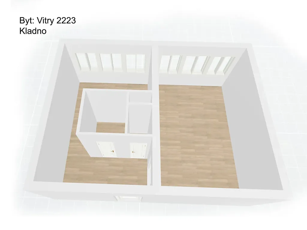 se v přízemí bytového domu v ulici Vitry 2223, Kladno. Byt je v původním stavu, což