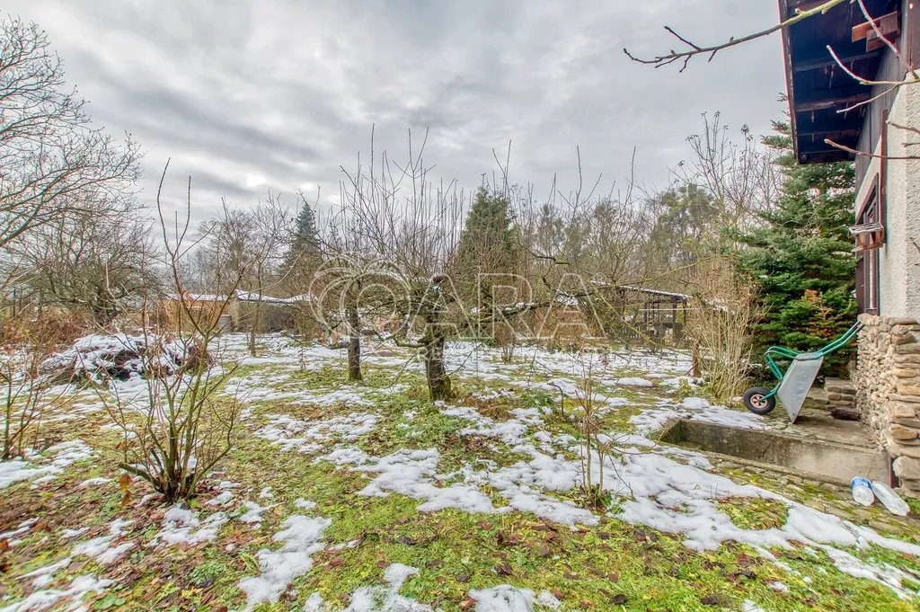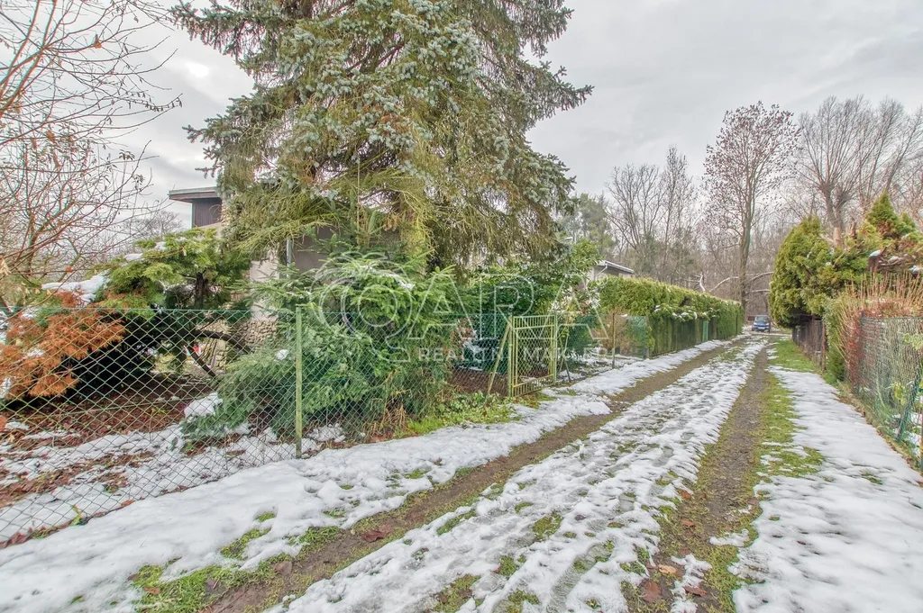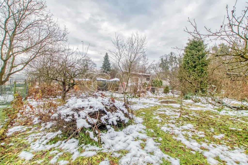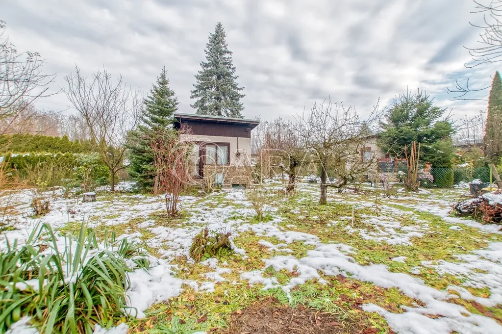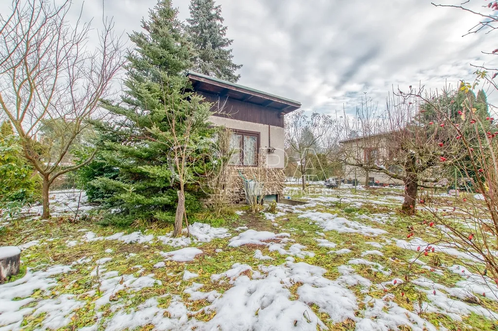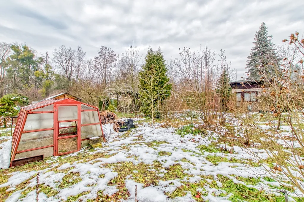 Celková výměra pozemku činí 392 m2, z toho samotná zahrada má přibližně 376 m2. Zahrada je orientovaná na jih, velmi slunná a porostlá ovocnými i okrasnými stromy. Součástí pozemku je také skleník s přivedenou vodou. Další úložný prostor se nachází nad přízemím chaty a je přístupný z venkovní strany.