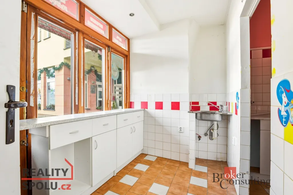 - Prodejní prostor o výměře 16,41 m², který byl historicky využíván jako oblíbená zmrzlinárna s výdejním okýnkem