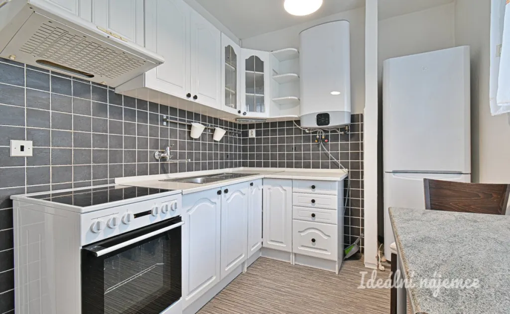 Byt se nabízí vybavený dle fotografií. Kuchyně disponuje jídelním stolem s židlemi, lednicí, elektrickou troubou, varnou deskou a digestoří. Obývací část je zařízena pohovkou, konferenčním stolem, knihovno, šatní skříní. V koupelně je sprchový kout a umyvadlo. Toaleta je umístěna samostatně.