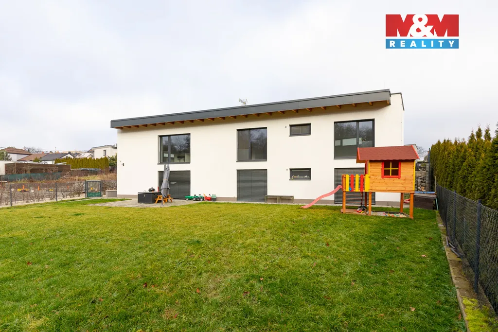 Na domě je instalována fotovoltaika, která přispívá k efektivitě provozu a modernímu stylu bydlení.