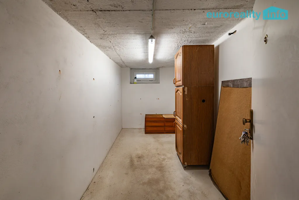 Součástí bytu je sklep, dále k nemovitosti náleží také 1/2 podíl na dalším sklepě umístěném u zadního vchodu domu, což výrazně zvyšuje úložný komfort a praktičnost bydlení.