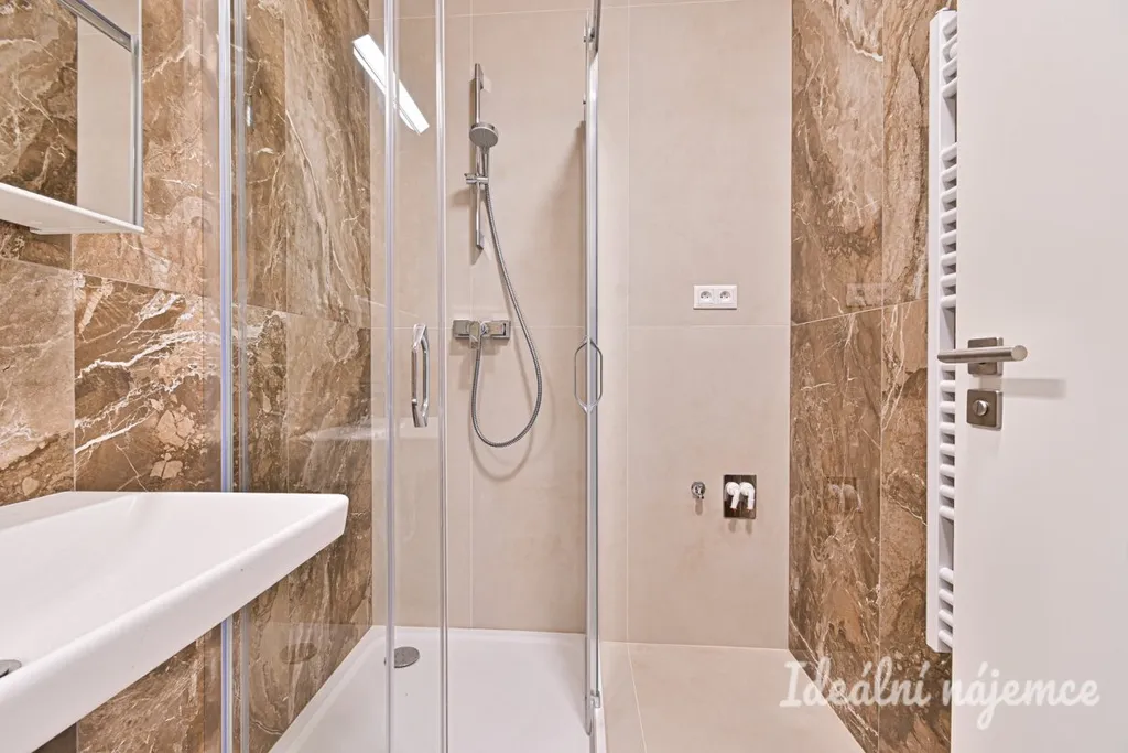 Hlavní obytný prostor s kuchyňským koutem působí světlým a vzdušným dojmem, má dostatek místa jak pro obývací, tak i spací část. Kuchyňská linka včetně myčky a lednice je moderní, v neutrálním designu, s dostatkem úložných prostor. Koupelna je vybavena sprchovým koutem, umyvadlem a toaletou. Pračka bude dodána. Součástí bytu je také balkon.