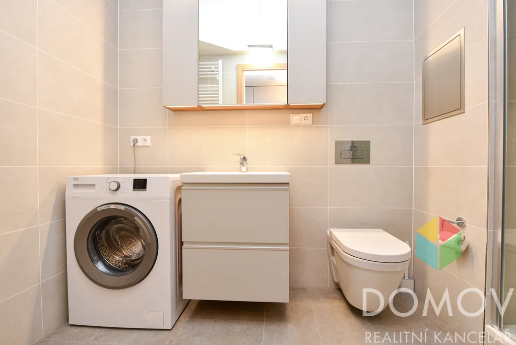 V 1.PP je k dispozici sklep (cca 5m2) s dostatkem místa např. na jízdní kolo, které si můžete umýt v myčce na kola, která je umístěna rovněž ve sklepních prostorách.
