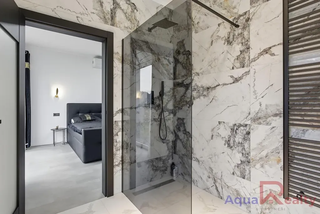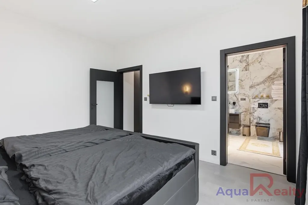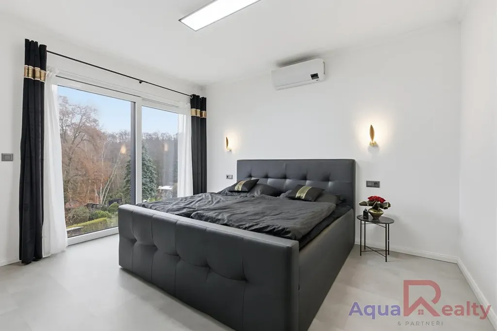 Dům nabízí tři ložnice a tři koupelny, díky čemuž má každý člen domácnosti dostatek soukromí. Hlavní ložnice (master bedroom) disponuje vlastní koupelnou, šatnou a především nádherným výhledem na Krušné hory, který se stane přirozenou součástí každého dne.