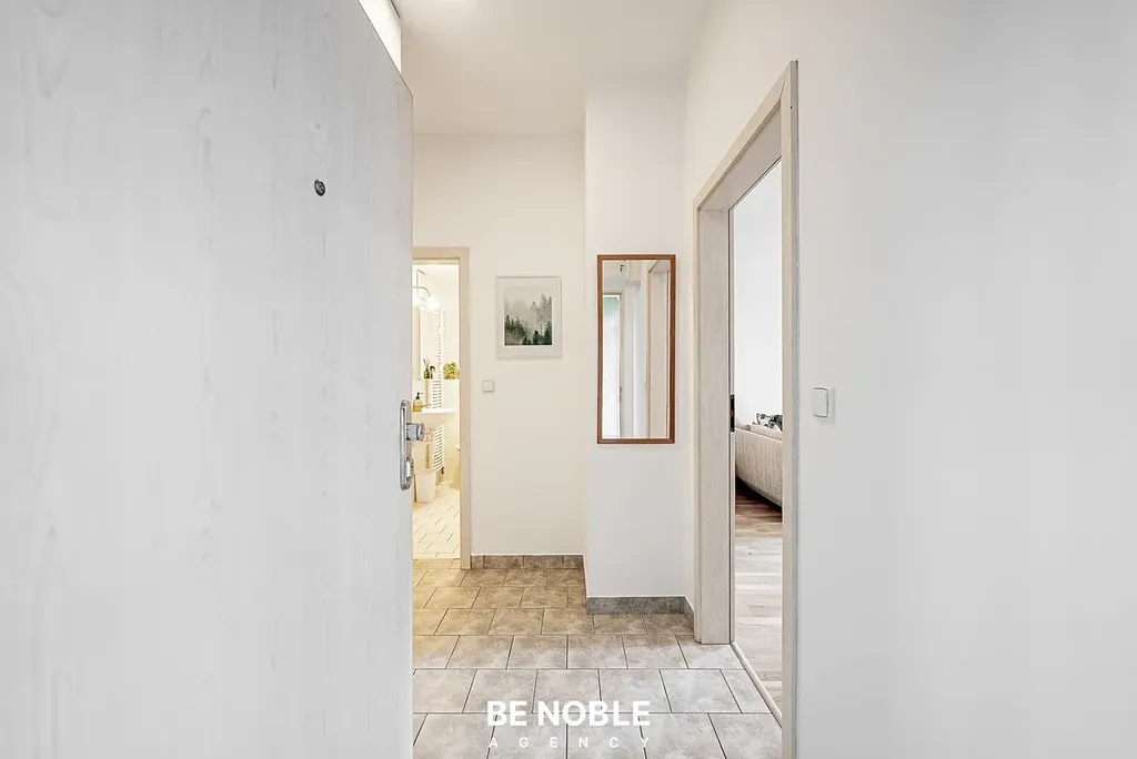 V předsíni (3,8 m²) je dostatek prostoru pro umístění skříně a dalších úložných řešení. Koupelna (4,8 m²) je čistá a zachovalá, vybavená vanou s novou baterií a pračkou s funkcí sušičky, kterou lze případně doplnit o samostatnou sušičku. O vytápění i ohřev teplé vody se stará vlastní plynový kotel, který spolu s energetickým štítkem PENB „C“ zajišťuje velmi nízké měsíční provozní náklady.