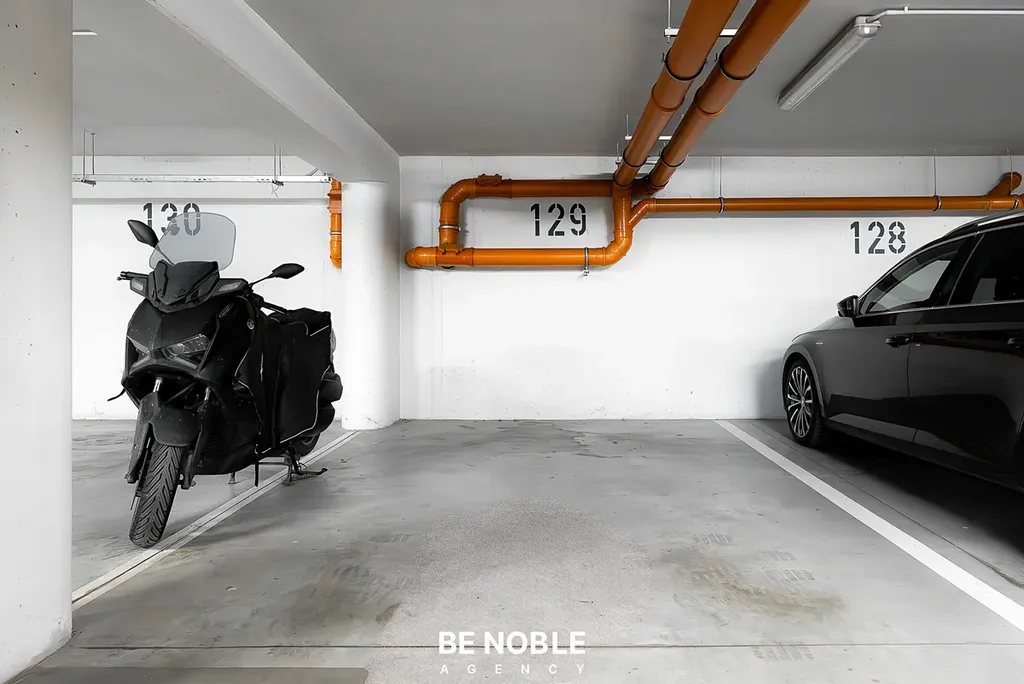 K bytu je možnost dokoupit podzemní parkovací stání v garáži za cenu 550 000 Kč, přičemž celková cena za byt se sklepem a parkovacím stáním činí 6 450 000 Kč.