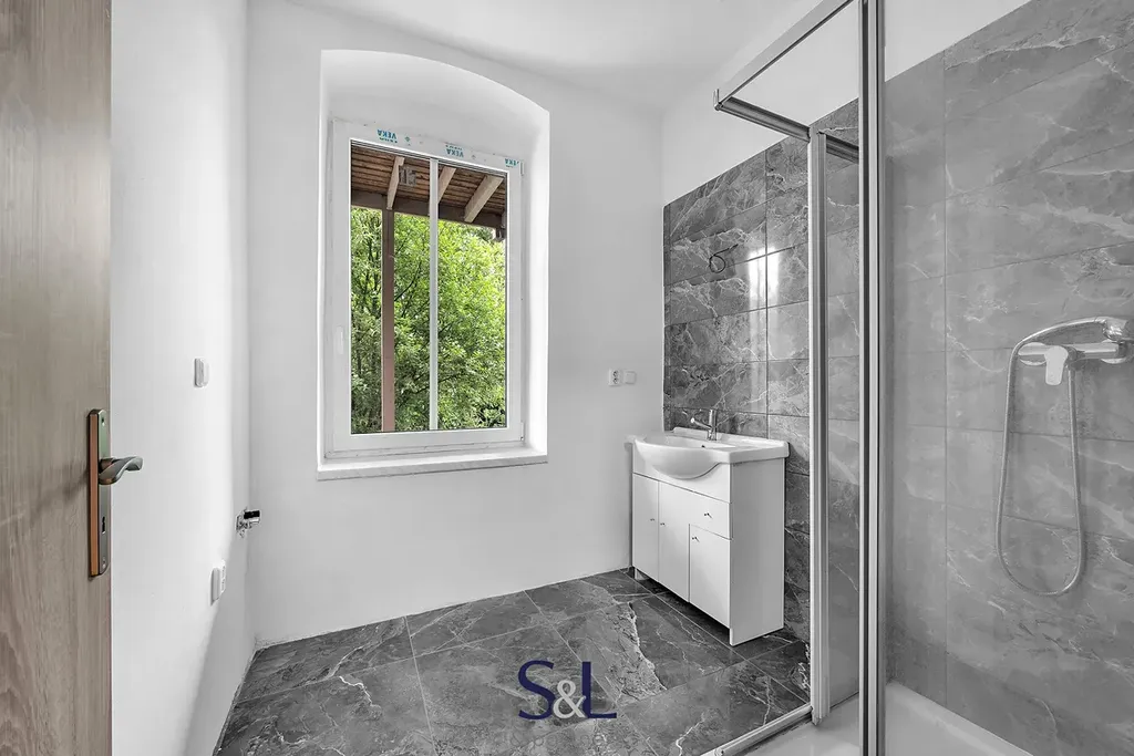 V přízemí stylově zrekonstruovaného domu se nachází nově vybudovaný byt 2+1 o velikosti cca 84 m², jehož největším benefitem je přímý vstup na soukromou zahradu. Ranní káva na čerstvém vzduchu, obývák pokračující ven, letní večeře pod širým nebem nebo malá bylinková zahrádka – to vše si tu můžete užívat každý den.