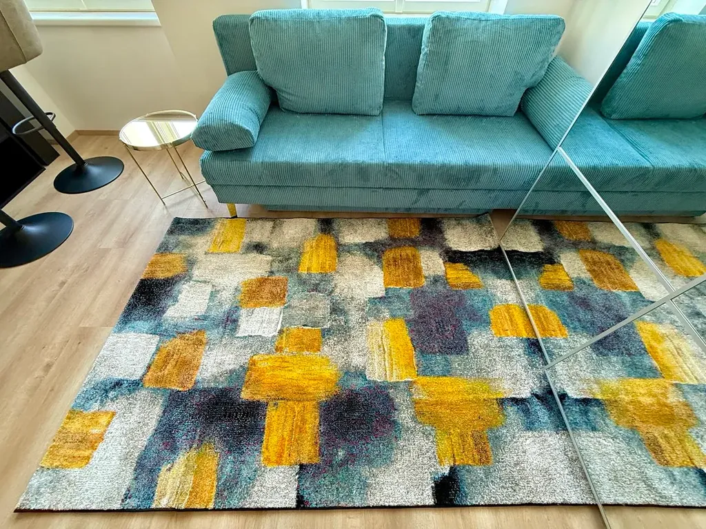 Byt je plně vybavený designovým nábytkem i spotřebiči, připravený k okamžitému nastěhování.