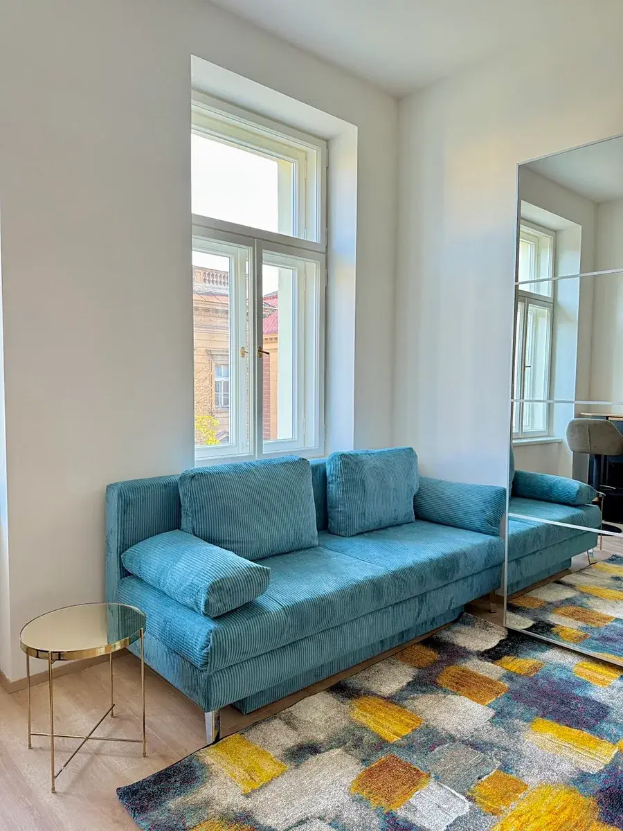 Centrum Prahy – pěší vzdálenost na metro, tramvaj, kavárny a obchody.