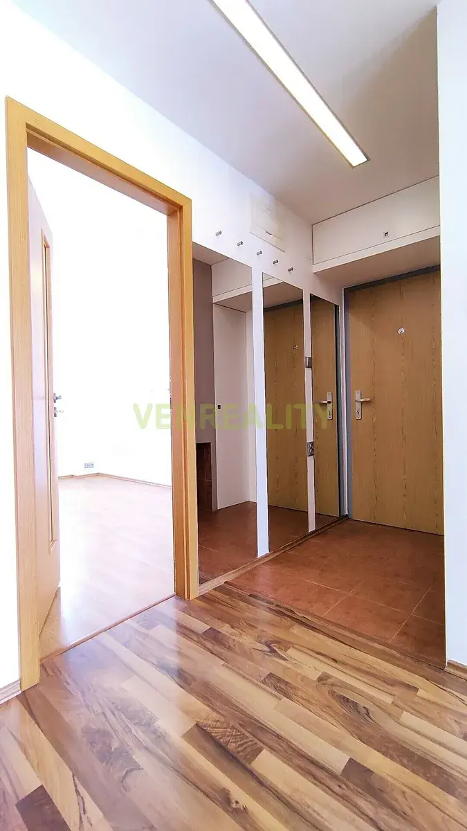 Na první pohled byt zaujme svým dispozičním uspořádáním, které vzniklo v rámci jeho rekonstrukce. Interiér bytu tvoří vstupní zádveří, s úložným prostorem v podobě menší vestavné skříně, na které navazuje prostorná středová chodba, ze které je vstup do všech ostatních místností, včetně praktické šatny, dvou ložnic, obývacího pokoje s kuchyňským koutem, jehož součástí je plně vybavená kuchyňská linka, dále z koupelny s vanou a samostatné toalety. Příjemné posezení s výhledem do zeleně Vám poskytne prostorná lodžie s jižní orientací, přístupná z obývacího pokoje.