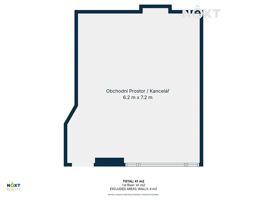 Nabízíme Vám k pronájmu světlý a velmi příjemný nebytový prostor o velikosti 41 m², vhodný pro kancelář nebo pro klidnou obchodní činnost (např. masážní studio, zdravá výživa, bezlepková prodejna, optika apod.).