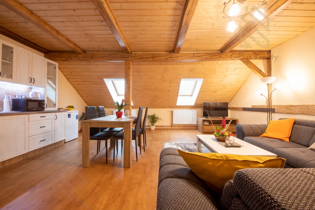 • 3 plně vybavené apartmány s kuchyní, obývacím pokojem a ložnicí (2 s klimatizací a střešními okny)