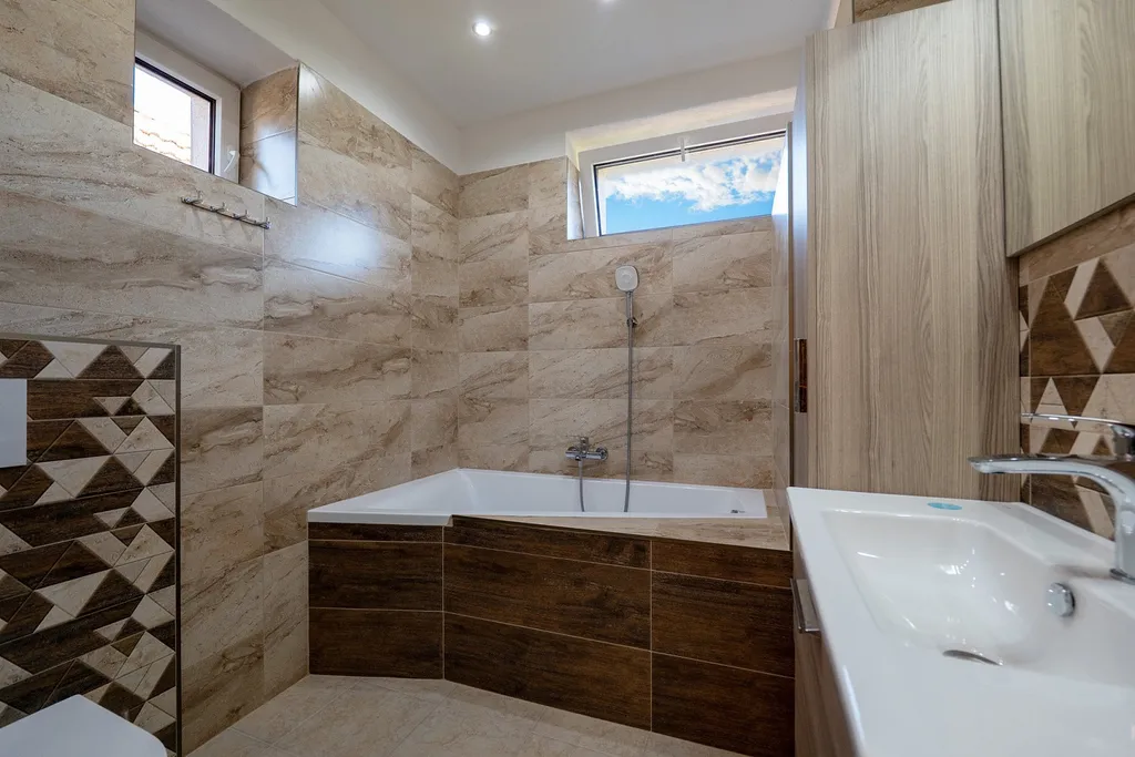 zrekonstruovaná moderní koupelna, samostatné WC